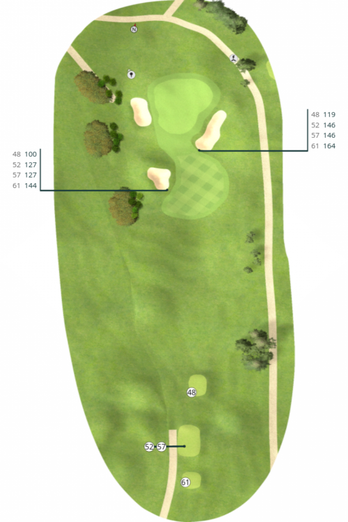 Tee 48: 138m Tee 52: 165m Tee 57: 165m Tee 61: 190m